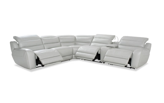 Milan Fog Leather Power Reclining Sectional with Power Headrest