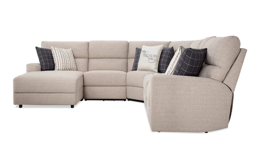 Modern Farmhouse Beige Power Reclining with Chaise Sectional & Power Headrest
