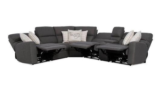 Modern Farmhouse Gray Power Reclining Sectional with Power Headrest