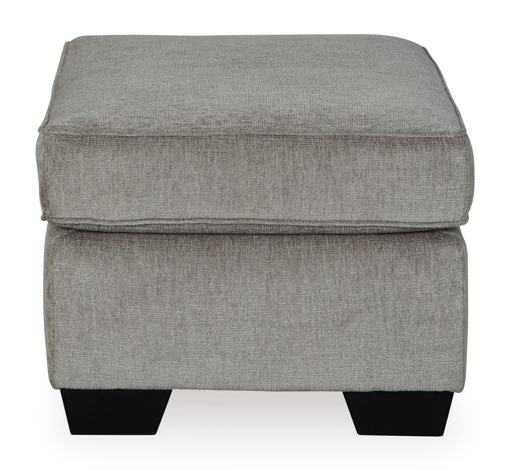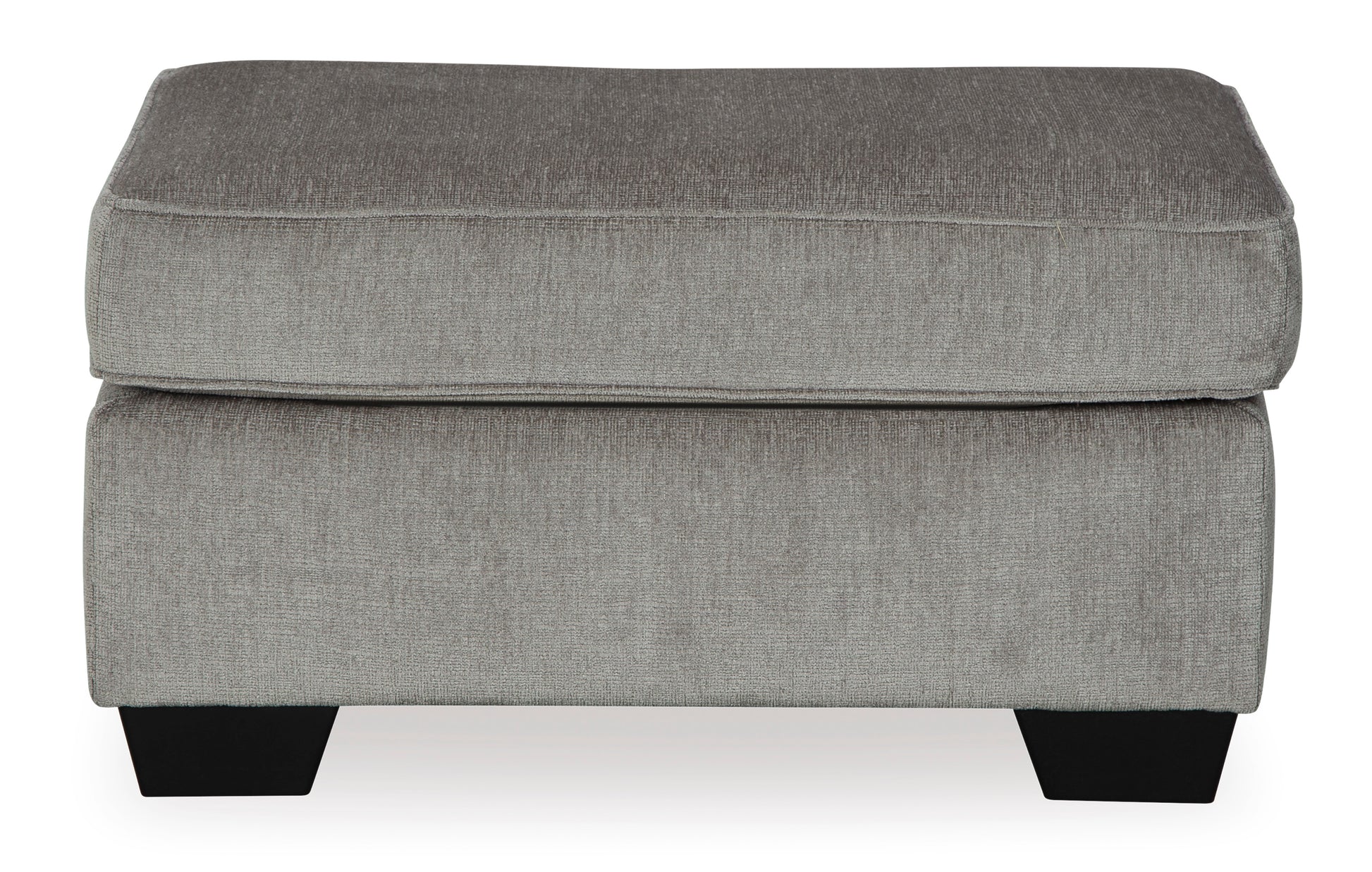 If style is the question, then this ottoman is the answer. Its decidedly contemporary profile is enhanced with plump cushioning and a chenille-feel upholstery that's so pleasing to the touch. Rest assured, this ottoman in slate gray is sure to play well with so many color schemes.