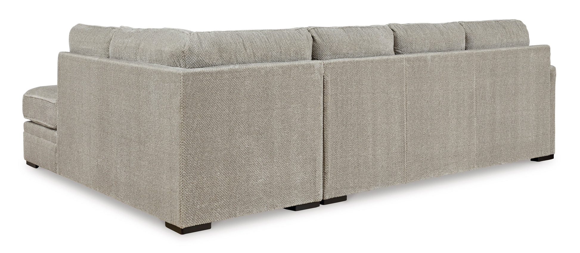 This sectional caters to your need for contemporary comfort. It’s decked out in feel-good fabric in a versatile hue. Family-friendly and ideal for hosts with the most, two chaises give more people the space the sprawl out. Quality time has never been so cozy.
