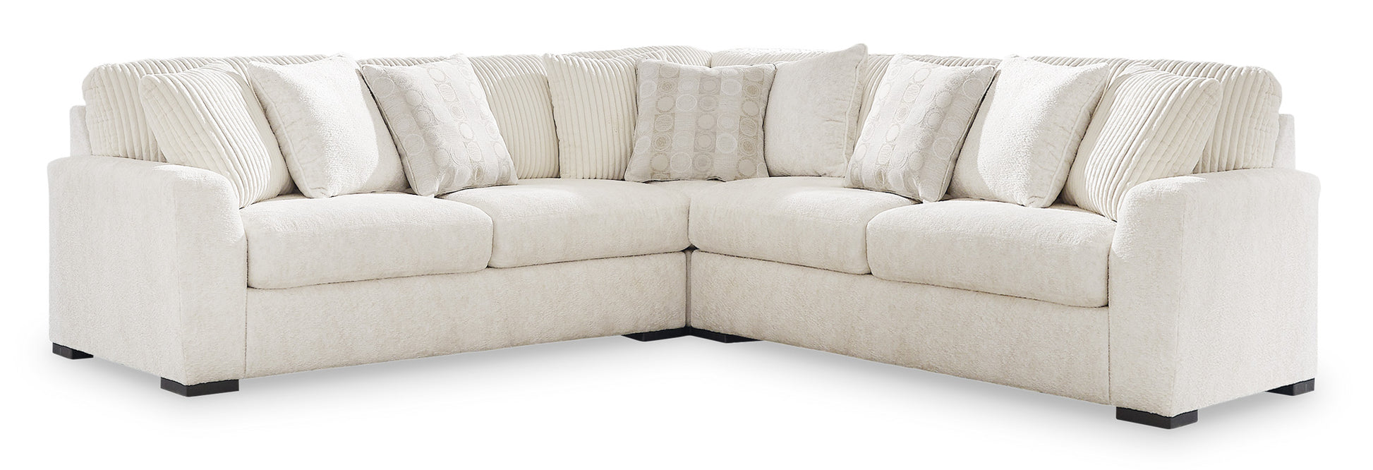 - Includes 3 pieces: left-arm facing sofa, wedge and right-arm facing sofa