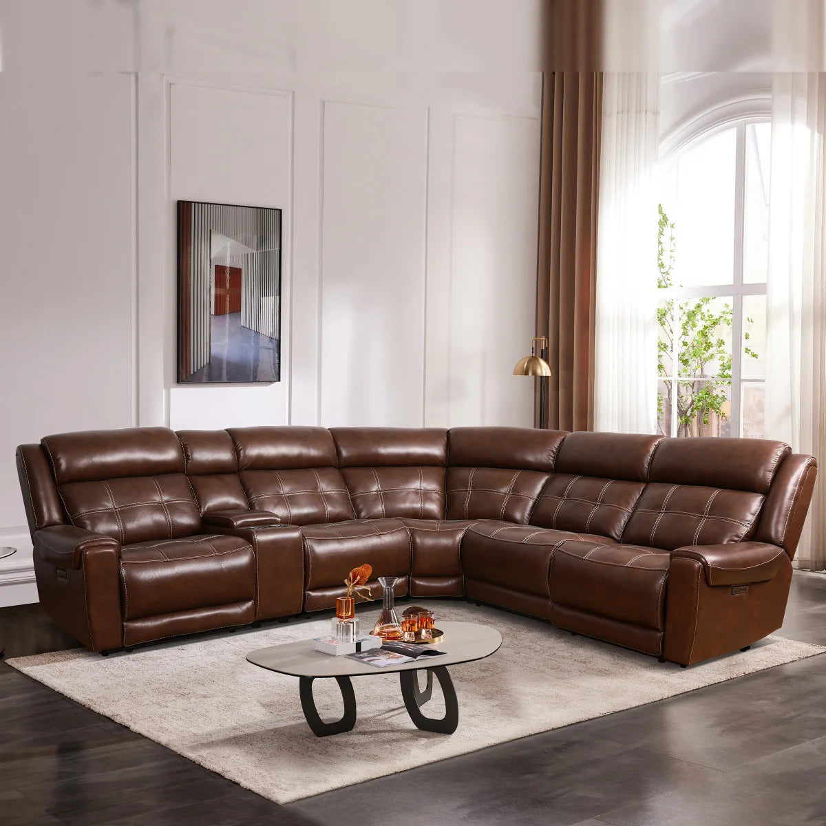 Seccional reclinable eléctrico de cuero de 6 piezas Concord con reposacabezas eléctricos