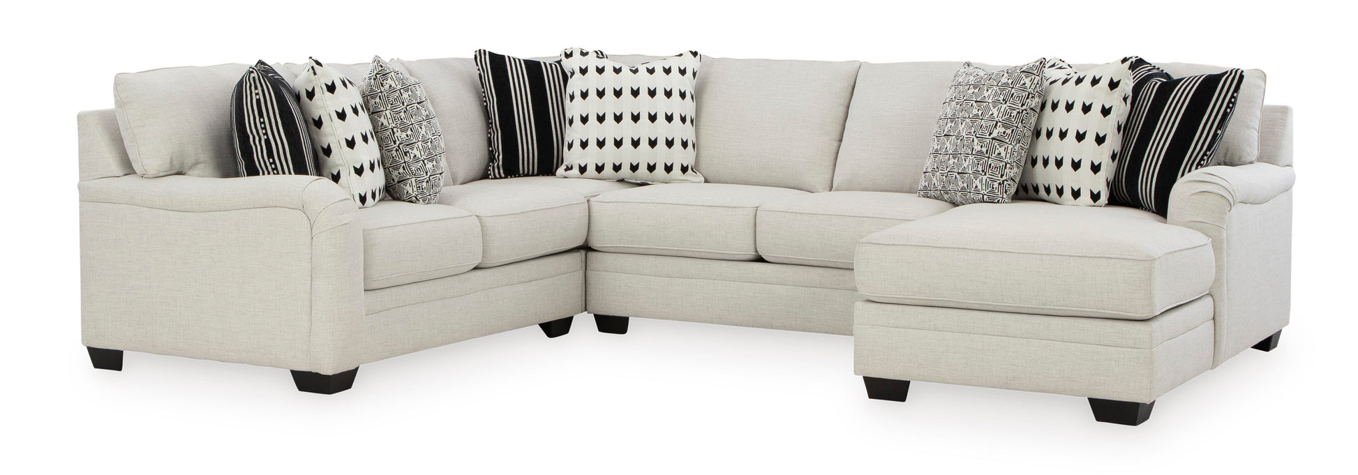 - Includes 4 pieces: left-arm facing corner chaise, armless loveseat, wedge and right-arm facing loveseat
