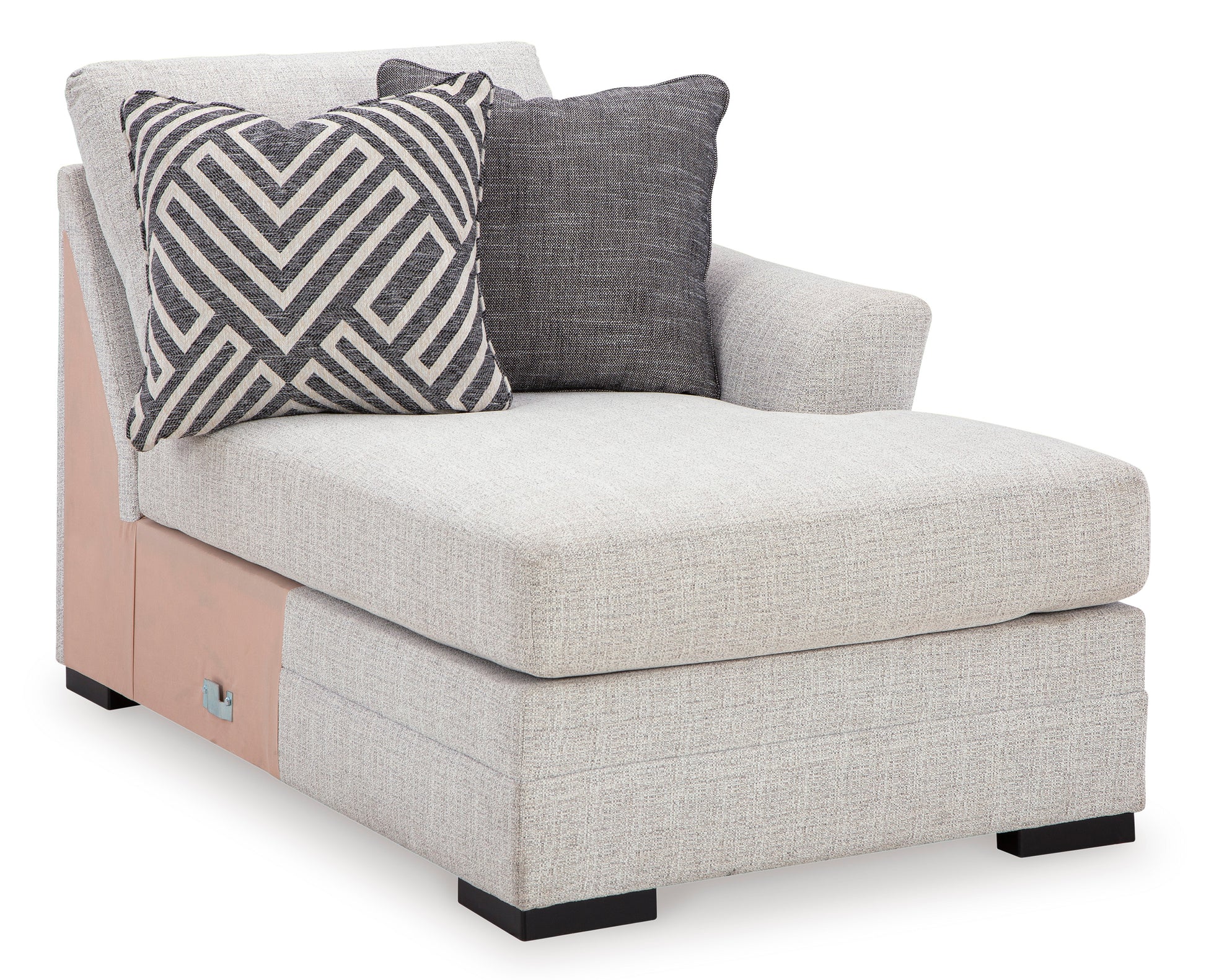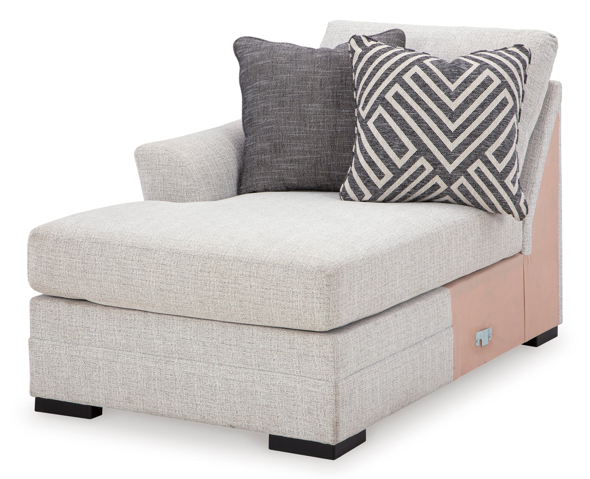 Refined design, reimagined to fit your busy lifestyle. This sectional with chaise impresses in high-traffic areas with its neutral hue and contemporary character. Stressed about upkeep with kids and pets in the house? You won’t need to sweat spills and messes, because the performance fabric is easy to clean and machine washable.
