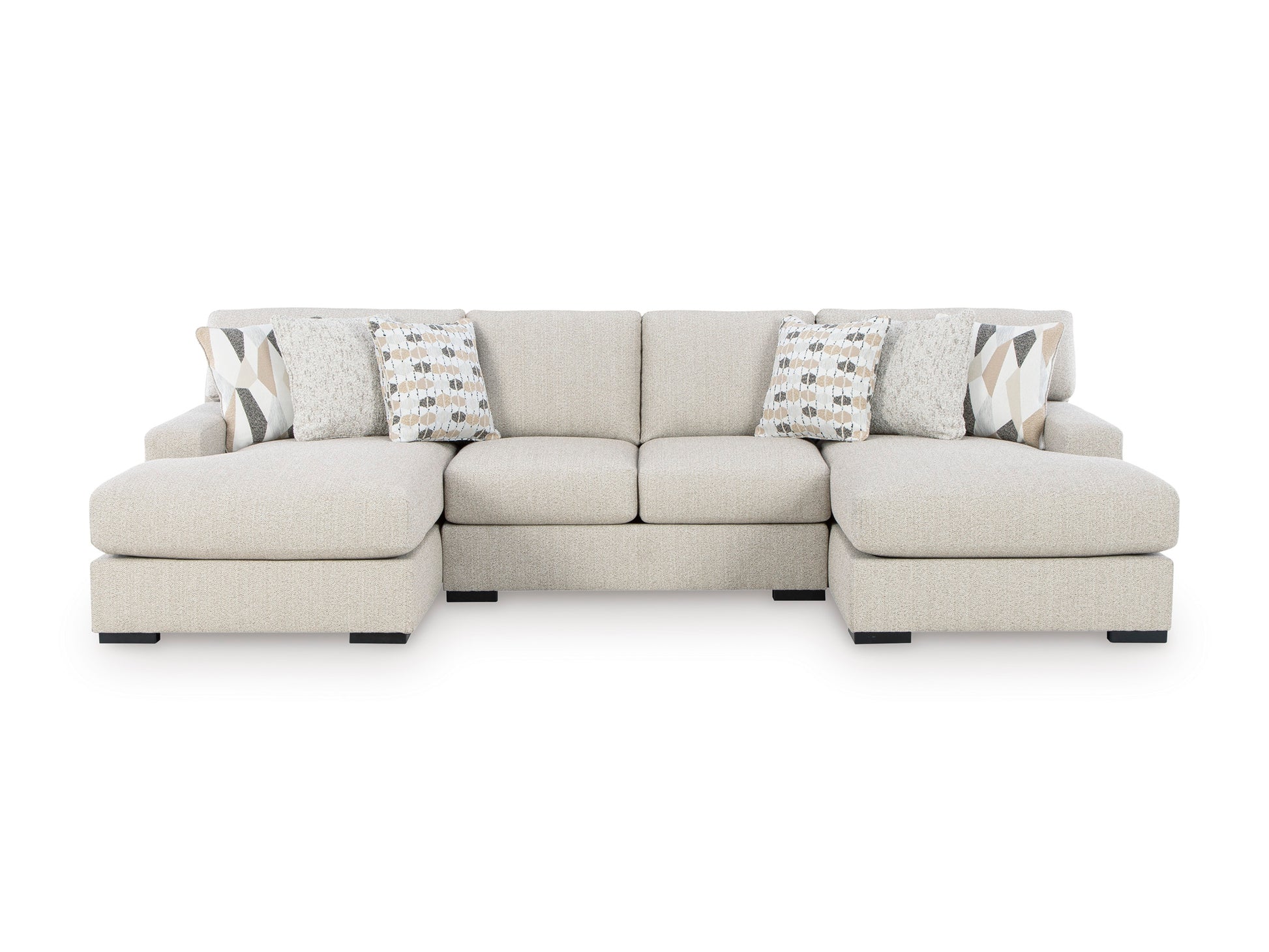 Looking for a centerpiece to complete your effortlessly chic and functional living room? The versatile character and ultra-plush cushions of this double chaise sectional make it an ideal fit for your relaxed lifestyle. Casual and contemporary with track arms and an inviting neutral hue, it pairs easily with your existing aesthetic. And its high-performance Next-Gen Nuvella™ upholstery makes maintenance a breeze, so you can spend less time sweating life’s little messes. Simply unzip the cushion or pillow covers and toss them in the wash for easy cleaning.