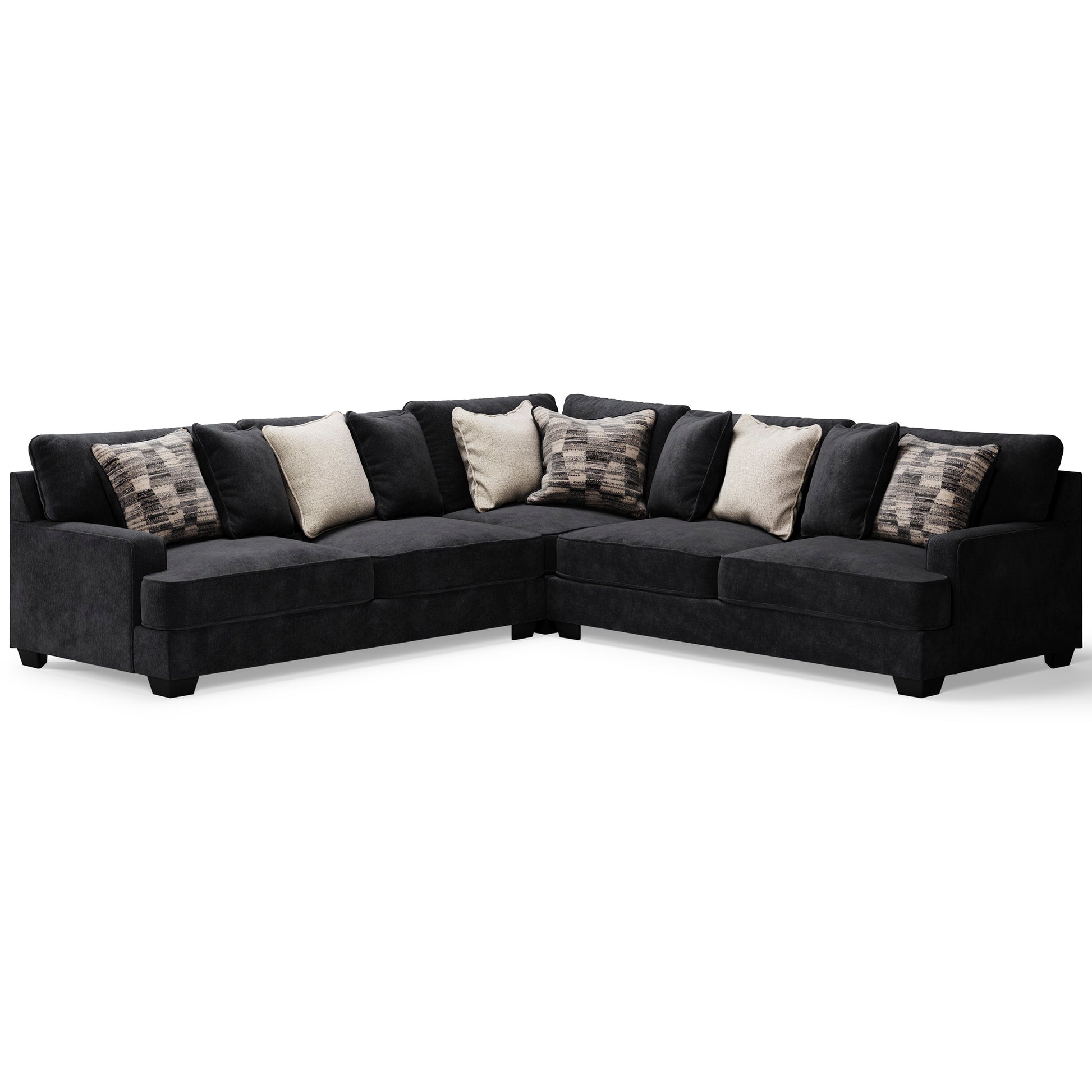 - Includes 3 pieces: left-arm facing sofa, wedge and right-arm facing sofa