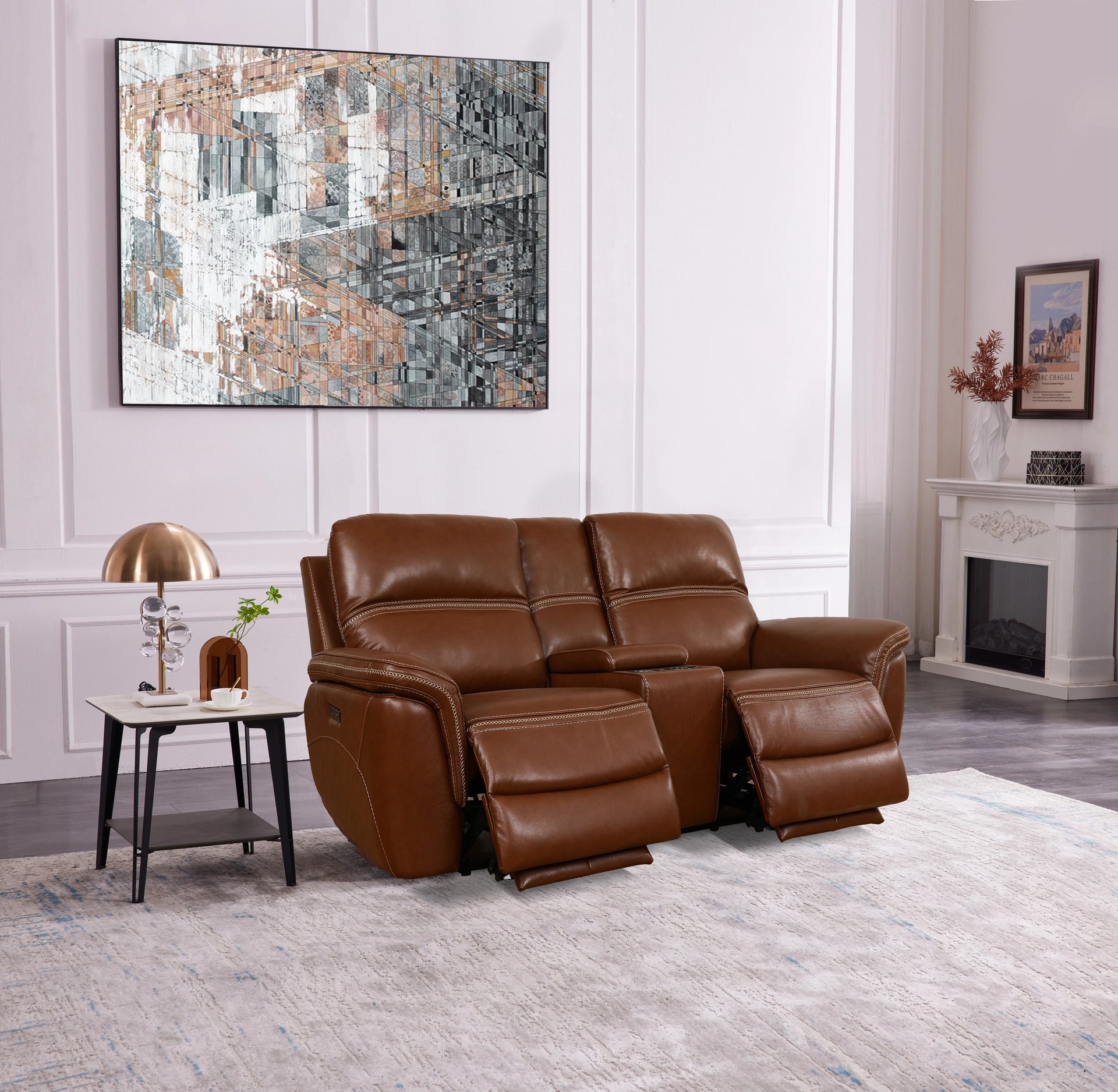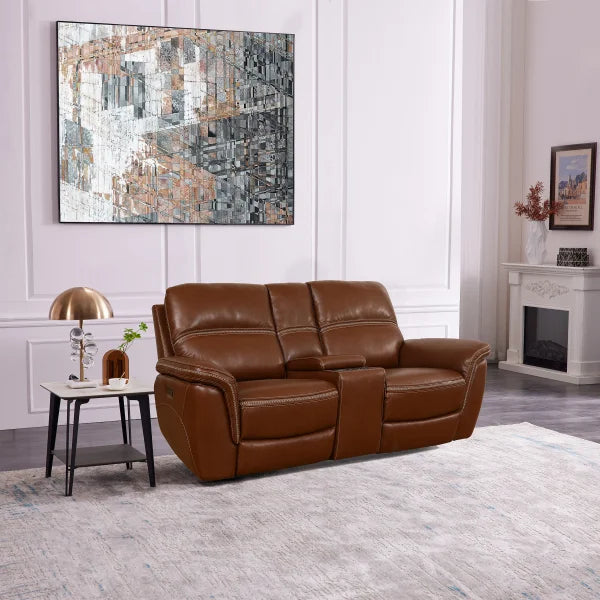Sofá de dos plazas reclinable eléctrico de cuero Oliver con reposacabezas eléctricos