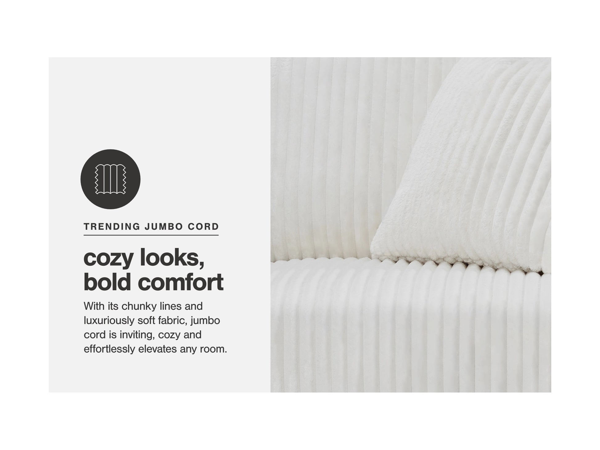 Lujoso y elegante. Demuestre su gusto por las texturas de tendencia con el llamativo tapizado de pana de este sofá modular con chaise longue. Su tela increíblemente suave atrae en un tono neutro cálido que complementa las paletas de colores contemporáneas. Húndase en los cojines y planee quedarse un rato: esta acogedora pieza central de la sala de estar resalta su enfoque de alta gama en comodidad y estilo.