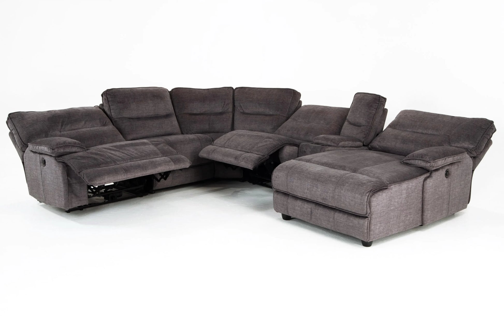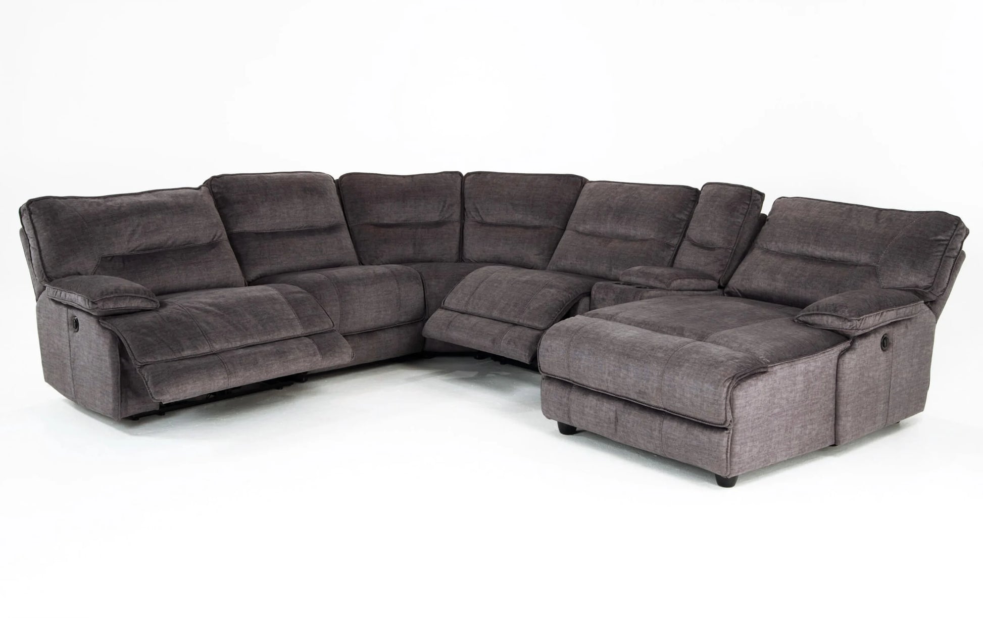 Fall into extreme comfort with my Pacifica 6 Piece Power Reclining Right Arm Facing Sectional. Sink into the luxury of my cushions that have a layer of Bob-O-Pedic Memory Foam wrapped in a brushed microfiber polyester, giving you the ultimate comfort. The ease of power recline puts you in control at the touch of a button, plus, the chaise gives you even more room to relax! But wait, there's more! My Pacifica also includes USB ports and cup holders in the console, plus an extra USB Port on the side of the recliners for charging convenience!