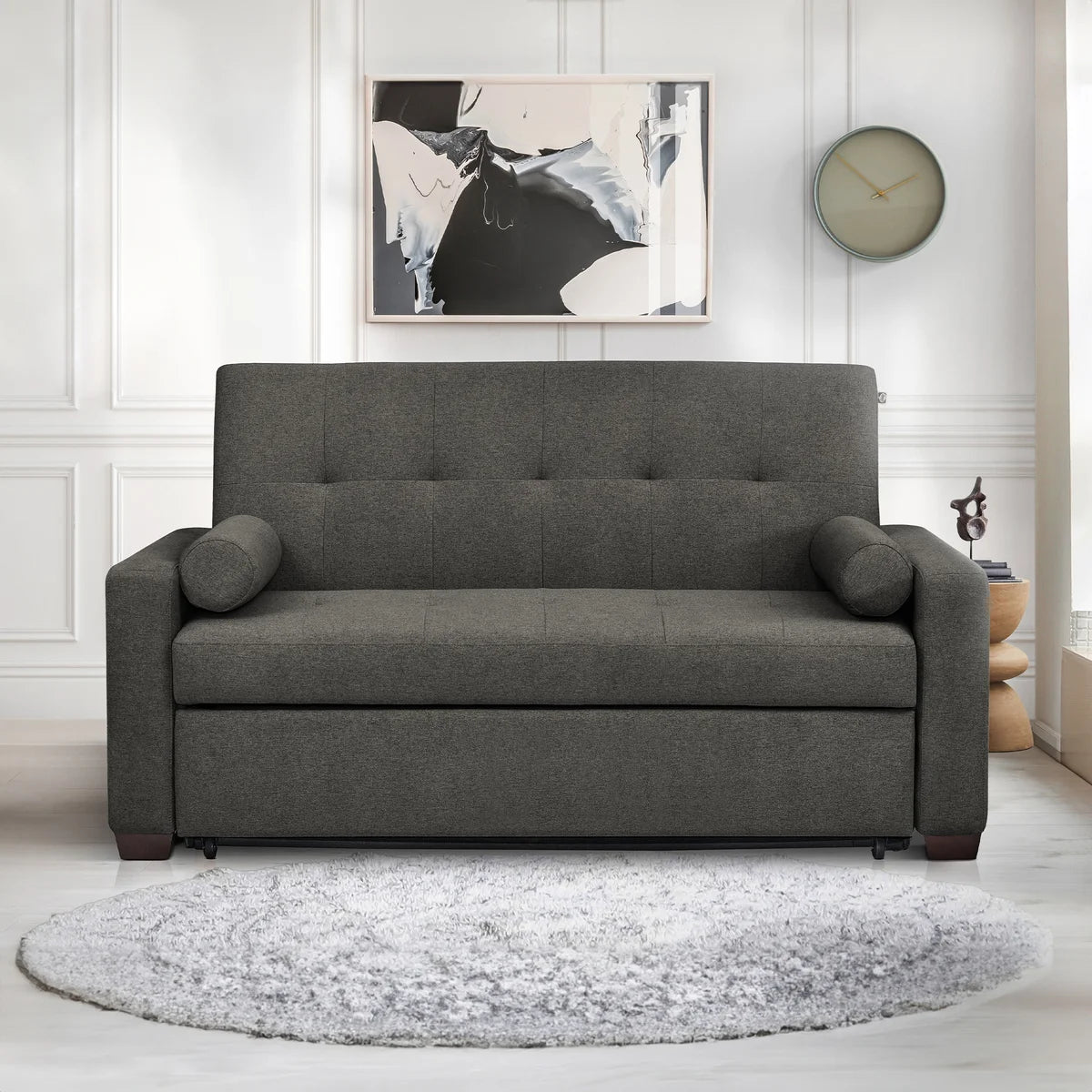 Introducing the ultimate in comfort and convenience – our innovative sleeper sofa. Whether you need a stylish sofa, relaxing lounger, or a cozy bed for the night, our Pop-up sleeper sofa effortlessly transforms to meet your needs. With two matching cushion pillows to add a touch of elegance, it’s not just versatile but also incredibly comfortable, thanks to the Sealy Resilient Foam Core and Stabilizing Foam Layer that provide unmatched support. Stay connected with ease, as this sofa bed features a Charging Station with Type A and Type C ports to keep your devices ready. Upgrade your living space with a sleeper sofa that combines style, versatility, and comfort.